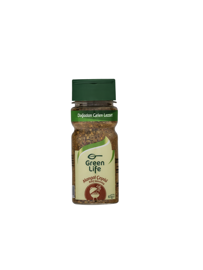 Green Life Mangal Çeşnisi’nin içeriğinde tatlı kırmızı biber, sarımsak, tuz, öğütülmüş kimyon, kişniş, hardal, mercanköşk, biberiye, kekik, pul biber, öğütülmüş karabiber, soğan, şeker ve aroma vericiler bulunuyor.